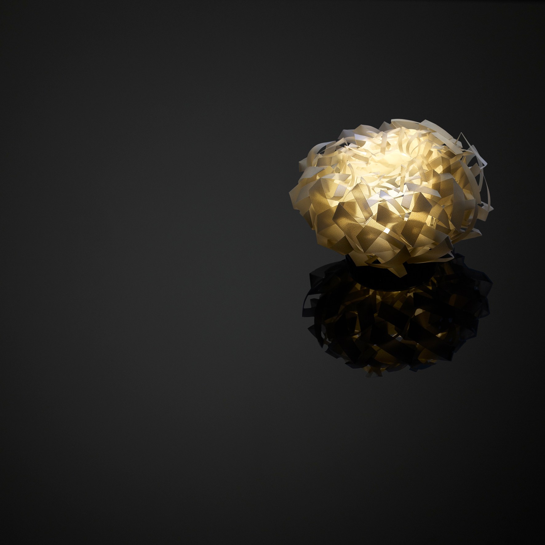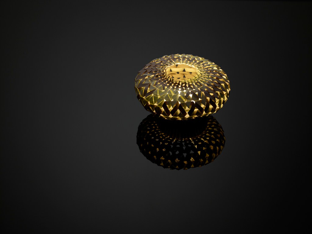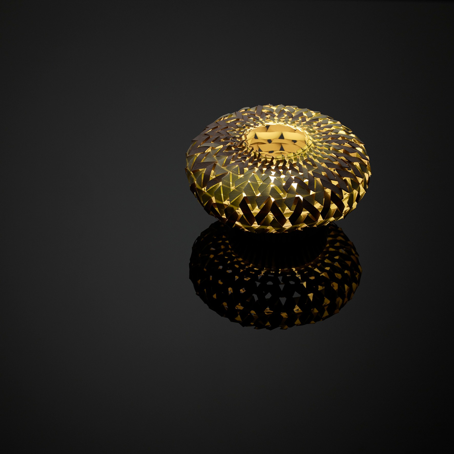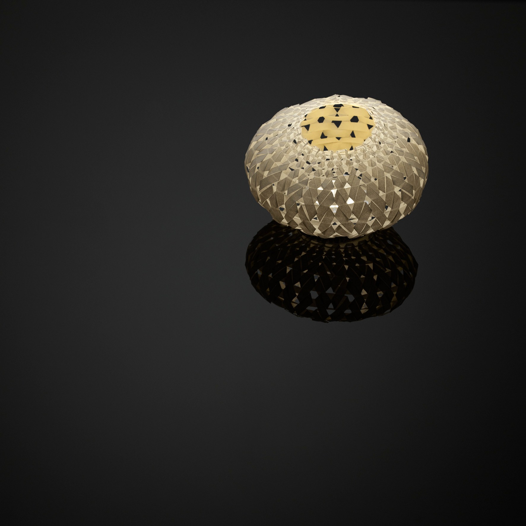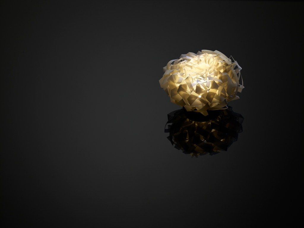 Building upon research combining mathematics, art, and modern object making, ‘touch down’ is a range of ‘moments’ where light touches “woven” paper. Using numerical algorithms, paper strips are mechanically cut and “knitted”. Under patient hands, paper, with its humble but expressive translucent quality, they become a precise distillation of something which nevertheless will always be ephemeral – light and hope.